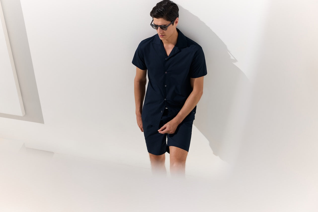 Elevated ease for coastal days and warm nights. The Luxury Resort Collection features soft terry toweling sets, camp-collar shirts with matching shorts in breathable summer fabrics, and minimalist swimwear. Relaxed, refined, and ready for resort living - wherever the sun may find you.