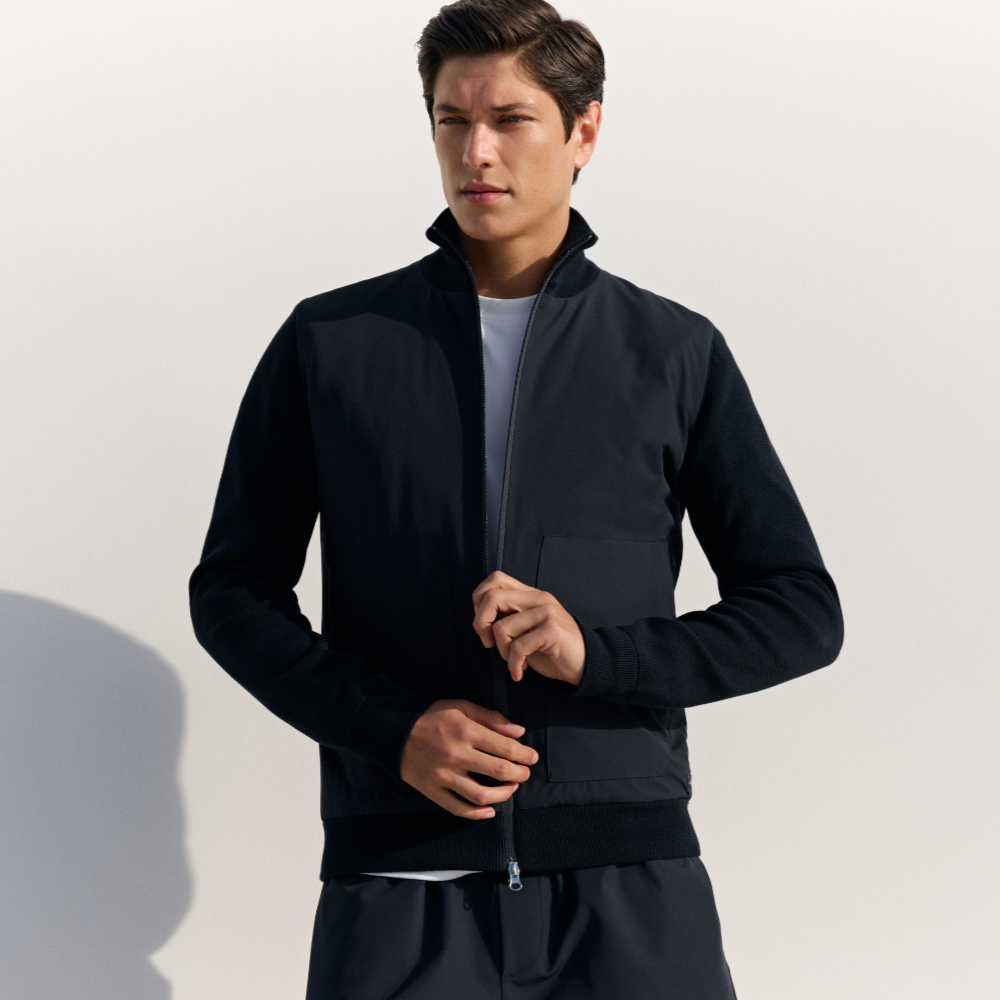 Our garments are crafted with premium textiles designed for superior functionality and durability. At the core of our innovation is TECH STRETCH, an advanced Italian 4-way stretch fabric with water-repellent properties.